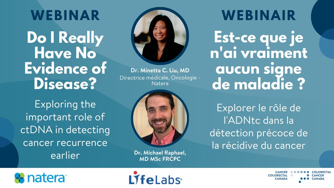In this webinar Dr. Minetta Liu, Medical Oncologist and Chief Medical Officer at Natera, and Dr. Michael Raphael, Medical Oncologist at Odette Cancer Center, will discuss ctDNA and how Signatera™ can help patients with early-stage colorectal cancer guide treatment and detect cancer recurrence earlier. Dr. Liu will provide an overview of ctDNA and Signatera™, while Dr. Raphael will share his patient’s experience with ctDNA testing