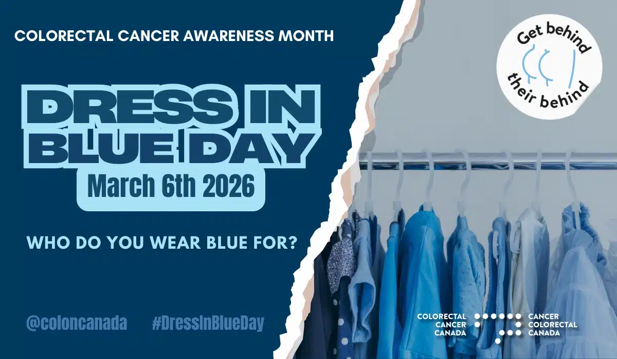On March 6th, 2026, we are encouraging everyone to dress in blue to show support of those touched by colorectal cancer, while raising awareness about this Preventable, Treatable, and Beatable disease that will be diagnosed in approximately 25,000 Canadians this year. Join the movement by organizing a workplace Dress in Blue event and/or sharing your personal ‘blue’ fashion style on your social media platforms by using the hashtag: #dressinblue and by tagging @coloncanada.