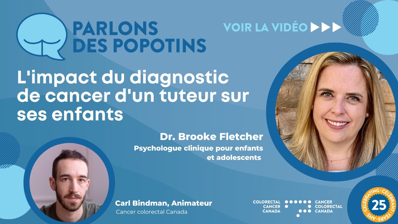 La Dre Brooke Fletcher se joint à Cancer colorectal Canada afin de discuter de l’impact d’un diagnostic de cancer sur les enfants. Cette émission de Parlons des popotins abordera en détail la façon de discuter d’un diagnostic de cancer avec vos enfants, certains des changements qui peuvent survenir et les stratégies pour aider votre enfant à faire face à la nouvelle.